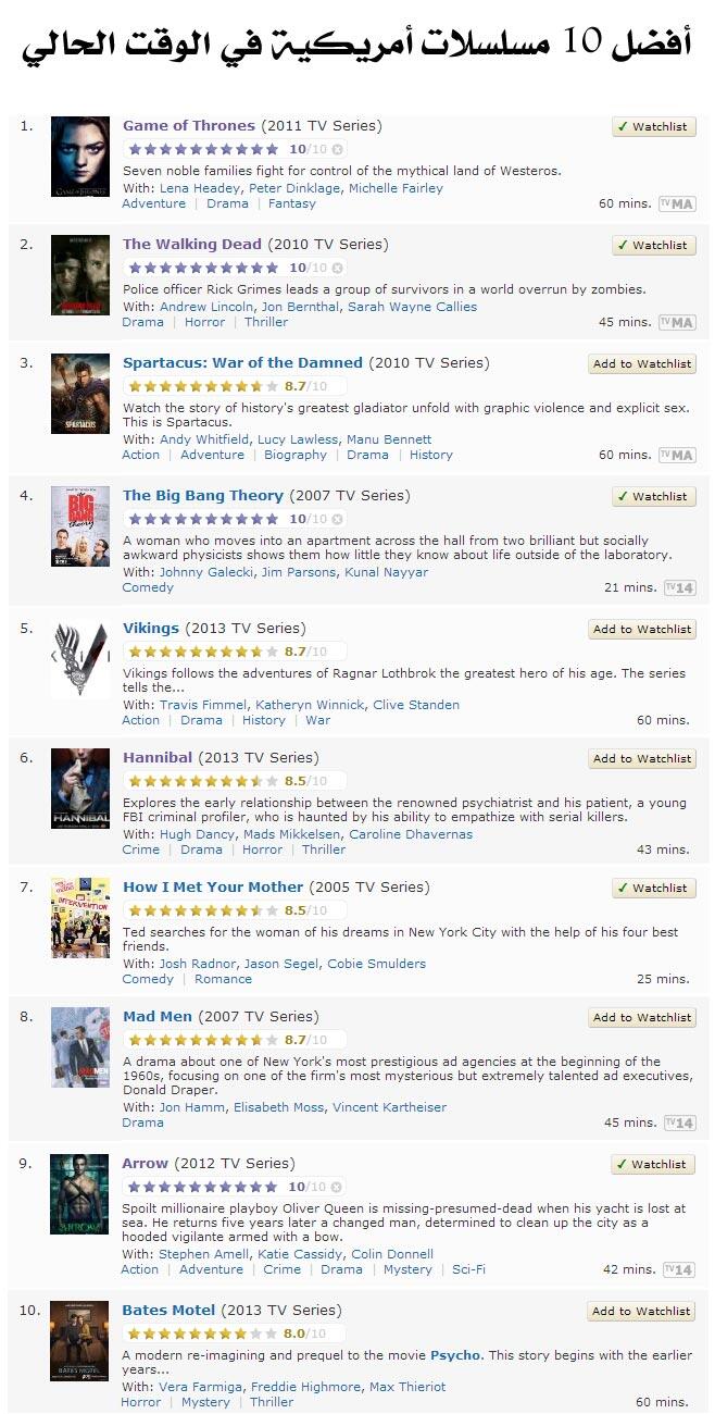 أفلام ومسلسلات On Twitter أفضل 10 مسلسلات أمريكية حاليا حسب تصنيف موقع Imdb Http T Co 6lfkvtxch3