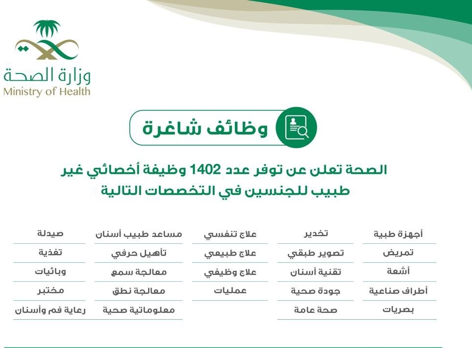 جدارة التسجيل في وظائف وزارة الصحة السعودية 1441 والطريقة وشروط التسجيل لشغل اكثر من 1402