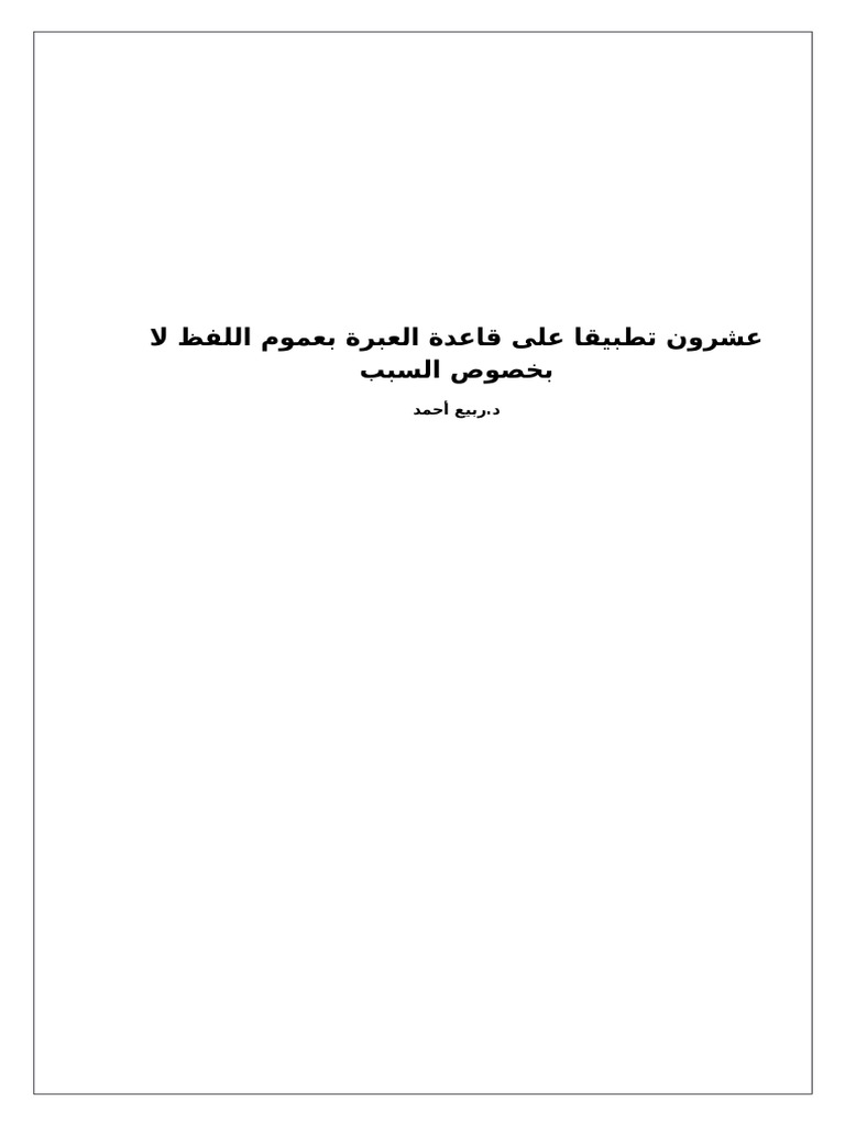Pdf هل العبرة بعموم اللفظ أم بخصوص السبب