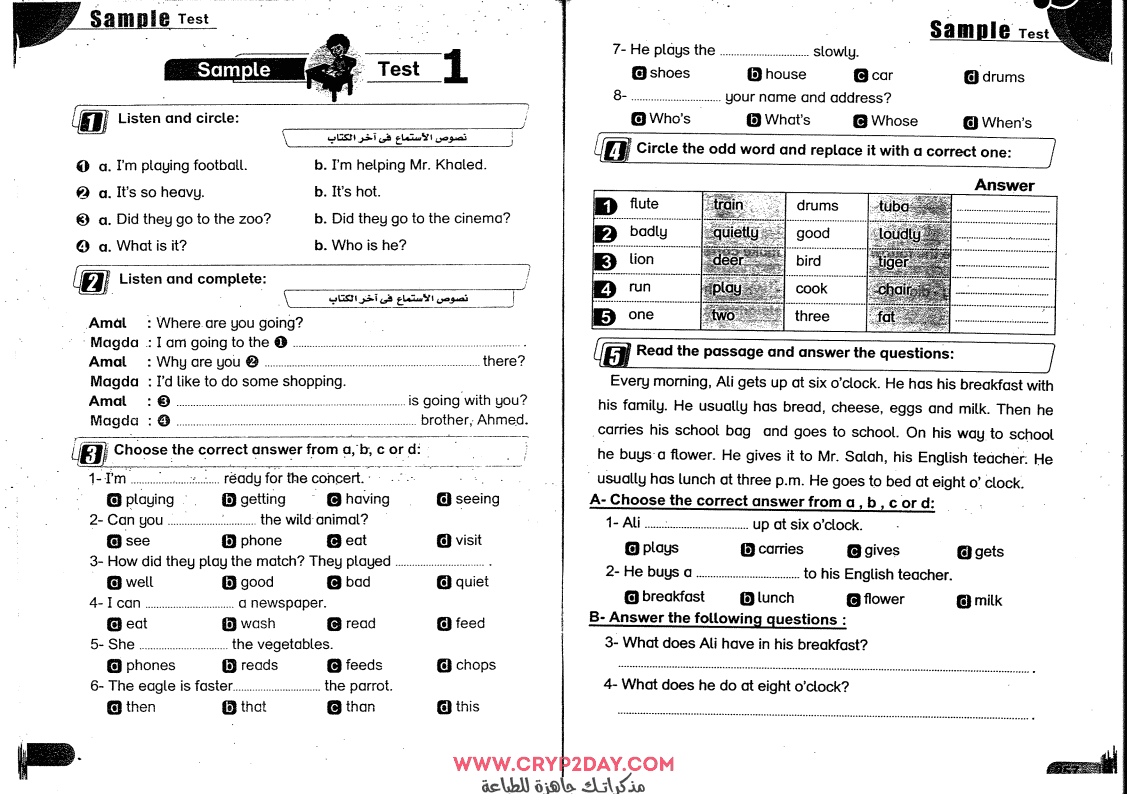 امتحانات انجليزى للصف السادس الابتدائى الترم الثانى 2019 المعاصر