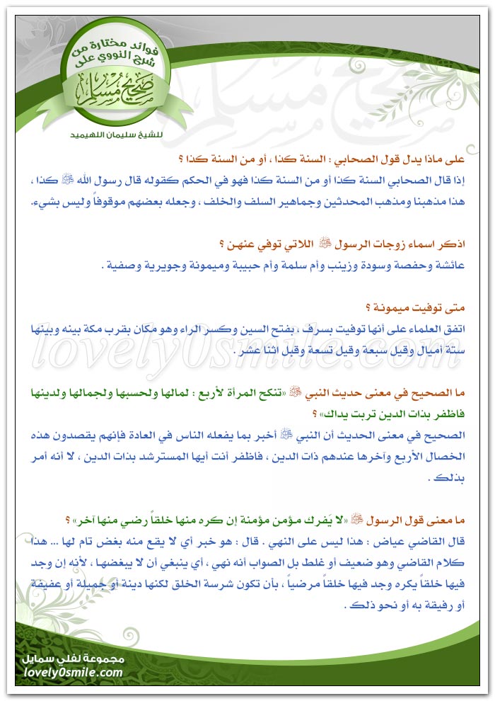 من فقه الحديث ٢٥ قال ﷺ لا يفرك مؤمن مؤمنة إن كره منها خلقا رضي منها آخر شبكة بينونة للعلوم الشرعية