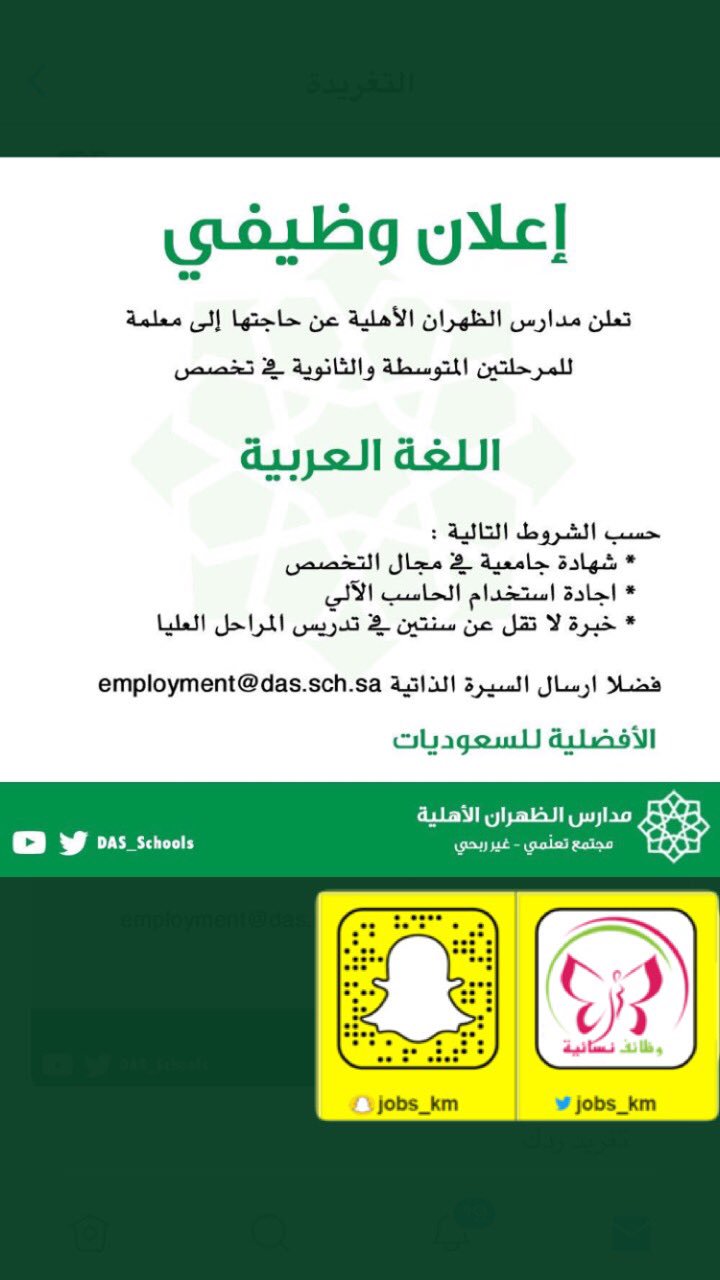 وظائف نسائية Twitterissa وظائف نسائية فرصة وظيفية في مدارس الظهران الأهلية قسم البنات Jobs Km وظيفه وظائف وظائف شاغرة للنساء توظيف السعودية Https T Co H6fyl1ahru