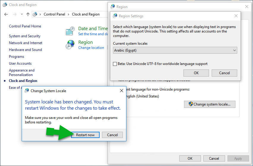 حل مشكلة ظهور اللغة العربية برموز غريبة في ويندوز 10 بالصور