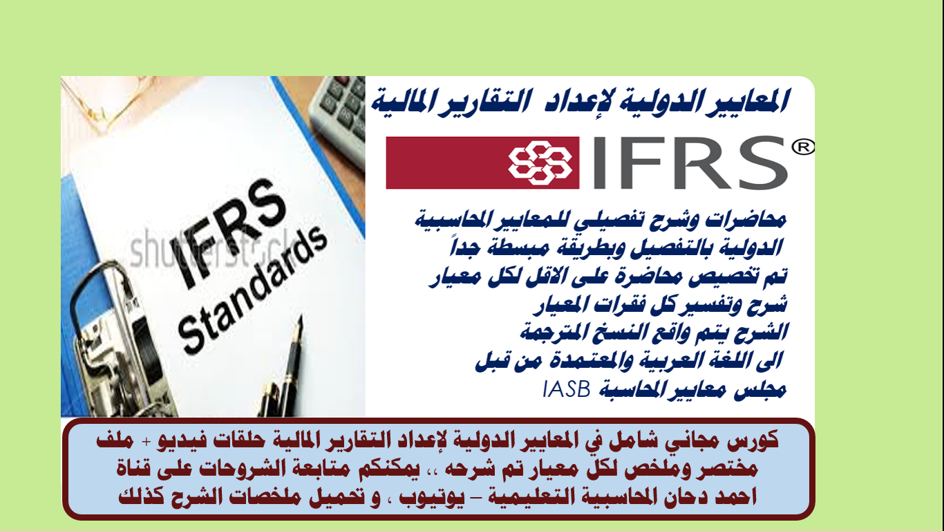 كورس شامل مجاني في معايير المحاسبة Ifrs محاضرات فيديو ومرفق ملفات الشرح Pdf مع اخر اصدار من معايير Ifrs نسخة 2018 ترجمة Socpa معايير المحاسبة الدولية Ifrs