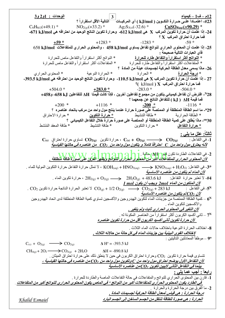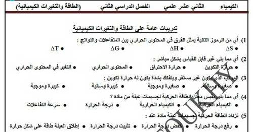 ملخص وأوراق عمل الطاقة والتغيرات الكيميائية كيمياء صف ثاني عشر متقدم فصل ثاني مدرستي الامارتية