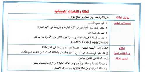 ملخص الطاقة والتغيرات الكيميائية فصل أول صف ثاني عشر متقدم مدرستي الامارتية