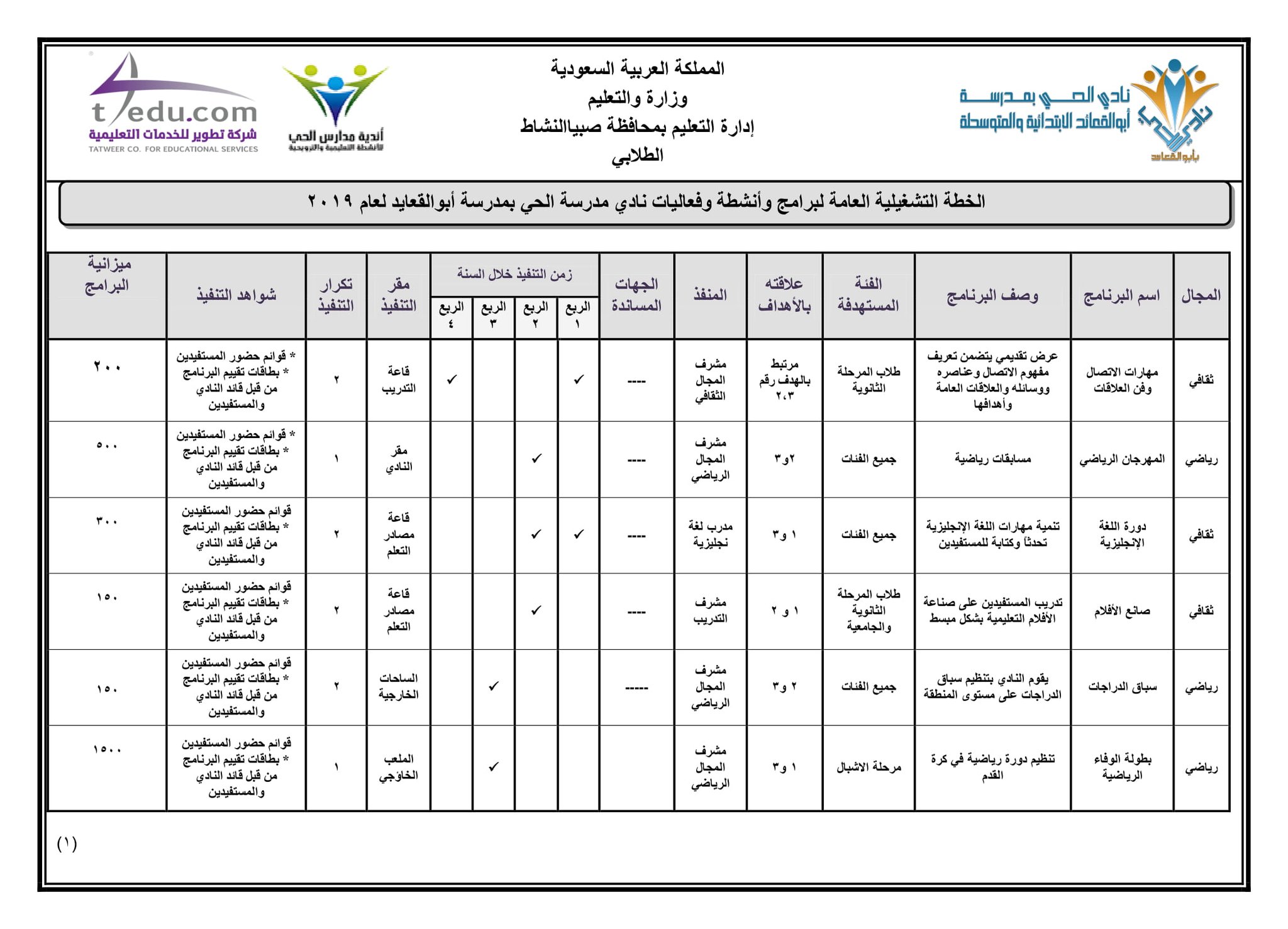 نادي الحي الترفيهي والتعليمي بأبوالقعايد On Twitter نماذج الخطة التشغيلية العامة لبرامج النادي خلال 2019 2020
