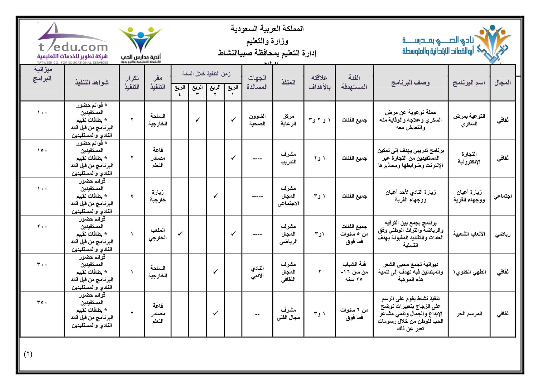 نادي الحي الترفيهي والتعليمي بأبوالقعايد V Twitter نماذج الخطة التشغيلية العامة لبرامج النادي خلال 2019 2020