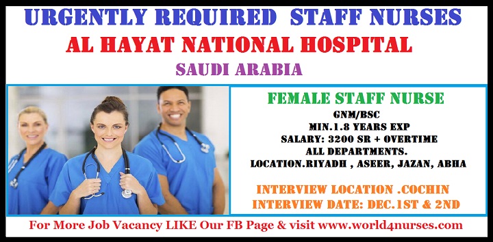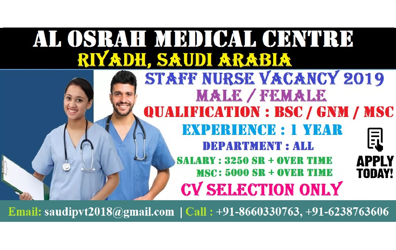 Urgent Recruitment Staff Nurse Male Female For Private Hospital In Saudi Arabia Nursespedia In